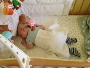 Készültünk mi babatakarókkal, de márciusi babához nyilván kicsit vastagabbakkal. Aztán eljött a nyár, amikor ezeket a kisplédeket és a hálózsákokat túl melegnek találtam, egy ideig szemeztem is a boltban nyári kistakarókkal. Azonban rájöttem, hogy a textilpelus pont elég vékony erre a célra, ezért júniustól augusztusig, itthon még szeptemberben is főként ezzel takartam be a gyereket, ha kellett.